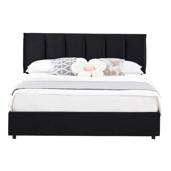 Upholstered Bed Frame Black Queen Metal Frame With 4-Storage Drawers and Adjustable Headboard Platform Bed