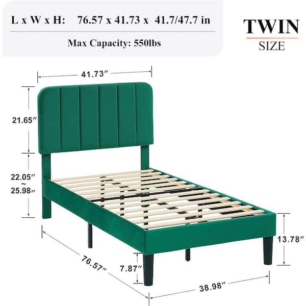 Upholstered Bed Frame, Twin Platform Bed Frame with Adjustable Headboard, Strong Wooden Slats Support, Green