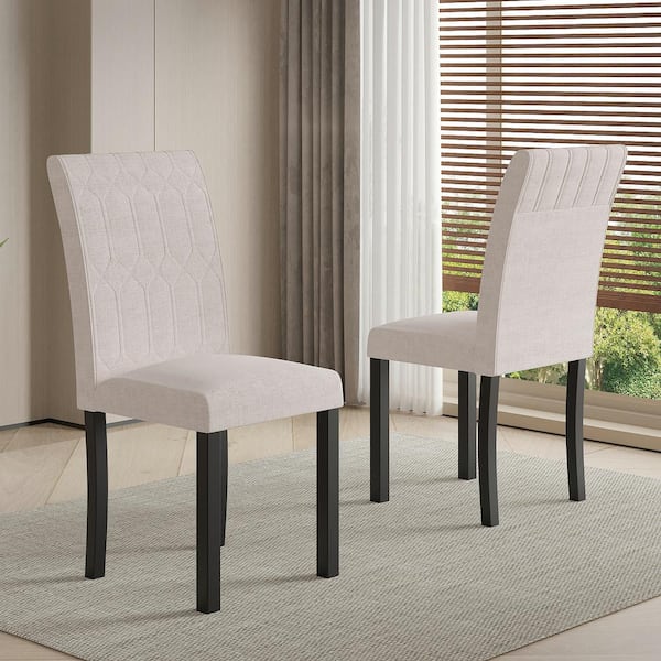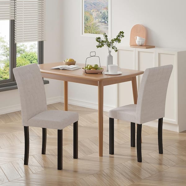Upholstered Dining Chairs Set of 2, Modern Linen, Solid Wood Legs with Rubber Footpads, Beige Kitchen Table Chairs