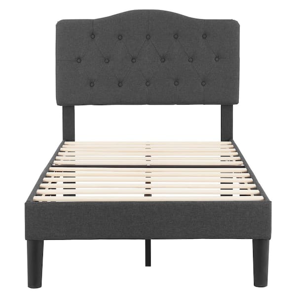 Upholstered Platform Bed with Button-Tufted Headboard Wood Slat Support Easy Assembly - Twin Dark Gray 41.73 in. W