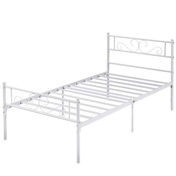 Victorian Bed Frame, White Metal Frame Twin Platform Bed No Box Spring Needed Heavy Duty Bed with Headboard, 40 in. W