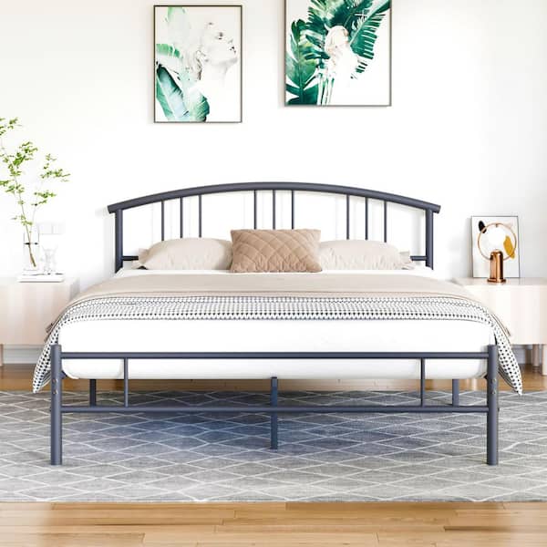 Victorian Style Bed Frames, Black Metal Frame Queen Platform Bed with Headboard, Solid Sturdy Steel Slat Support