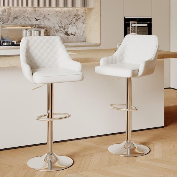 White Modern Bar Chair with Back Adjustable Swivel Bar Stools Set of 2 Kitchen Island Bar Chair Counter Height