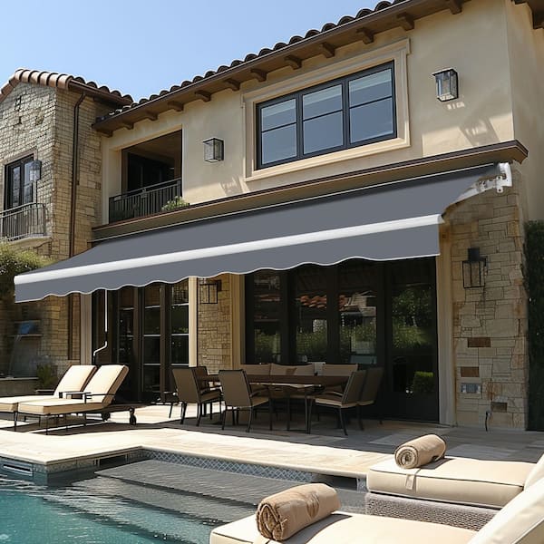 13 ft. Outdoor Retractable Awning Patio Sun Shade with UV Protection (96 in. Projection) in Gray