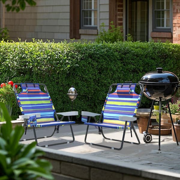 2-Pack Backpack Beach Chairs Adjustable Folding Lounge Chairs with Pillow and Storage Bag, Multi-Color Stripe