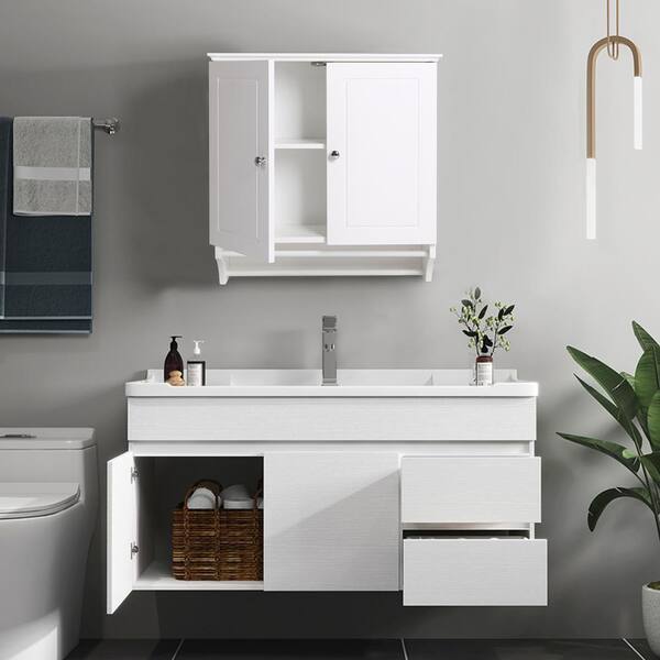 24.4 in. W x 8.6 in. D x 23.6 in. H White Wall Mounted Bathroom Cabinet Storage Organizer