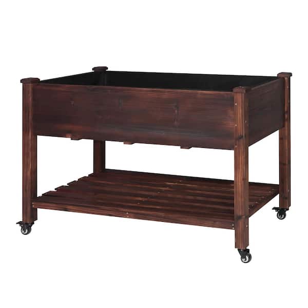 47 in. x 23 in. x 33 in. Brown Cedar Wooden Raised Garden Bed with Lockable Wheels and Liner