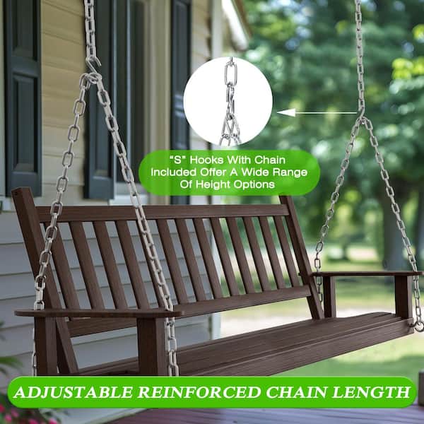 5 ft. Wood Patio Porch Swing Outdoor With Chains and Curved Bench, Carbonized
