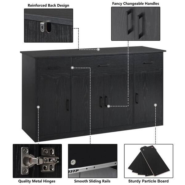 56 in. Black Accent Buffet Cabinet with Storage, Particle Board Top Kitchen Cabinet with 4-Doors and 3-Drawers