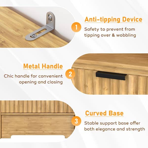68 in. H Bamboo Accent Cabinet Storage Tall Cabinet with Curved Profile and Drawer in Yellow
