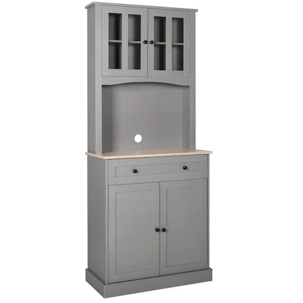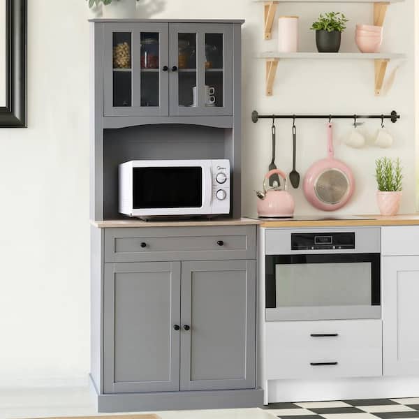 72 in. H Gray Kitchen Pantry Organizers with Buffet Cupboard, Microwave Stand and Adjustable Shelves
