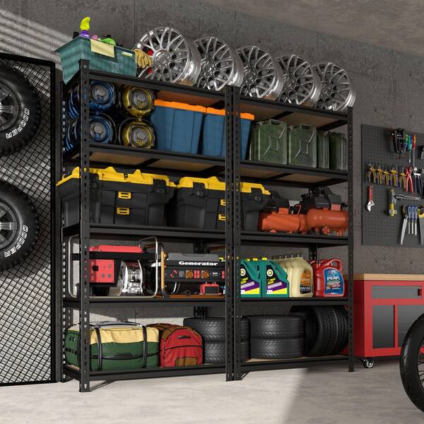 72 in. H x 36 in. W x 18 in. D Black MDF 5-Shelf Garage Storage Shelving Unit Standard Bookcase with Adjustable Shelves