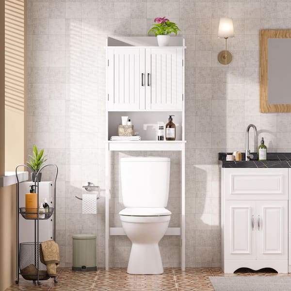Bathroom Over-the-Toilet Storage 21.7 in. W x 66.9 in. H x 7.1 in. D Composite Rectangular Shelf in White
