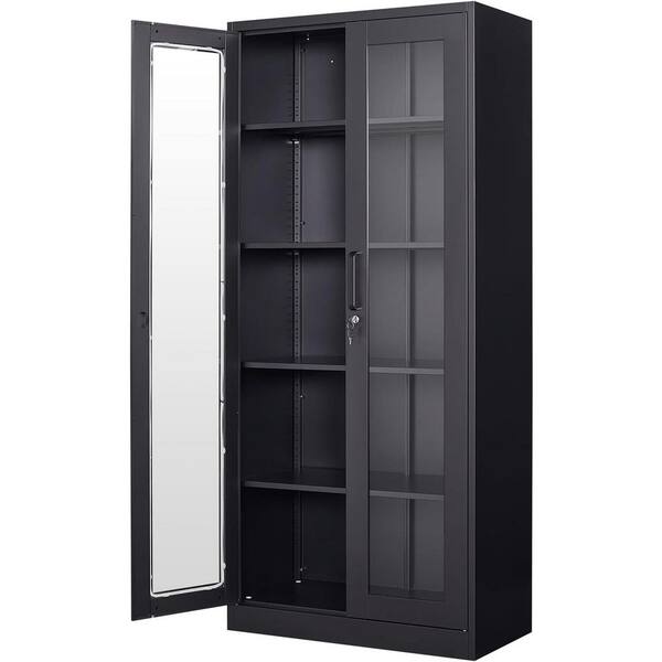 Black Wood 31.5 in. W Display Cabinet with Shelves