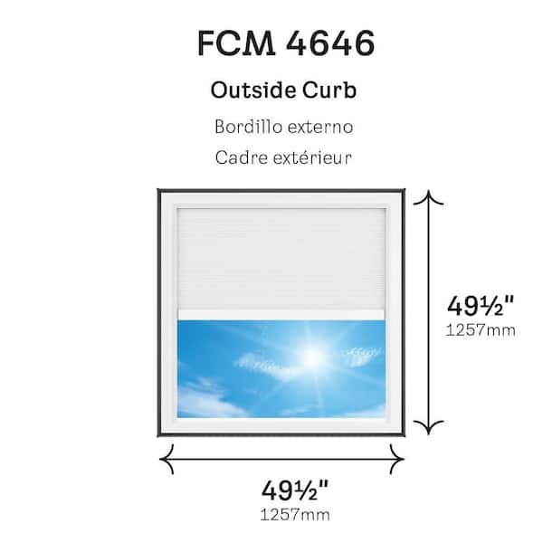 46-1/2 in. x 46-1/2 in. Fixed Curb Mount Skylight with Laminated Impact Low-E3 Glass, Solar Powered Room Darkening Shade