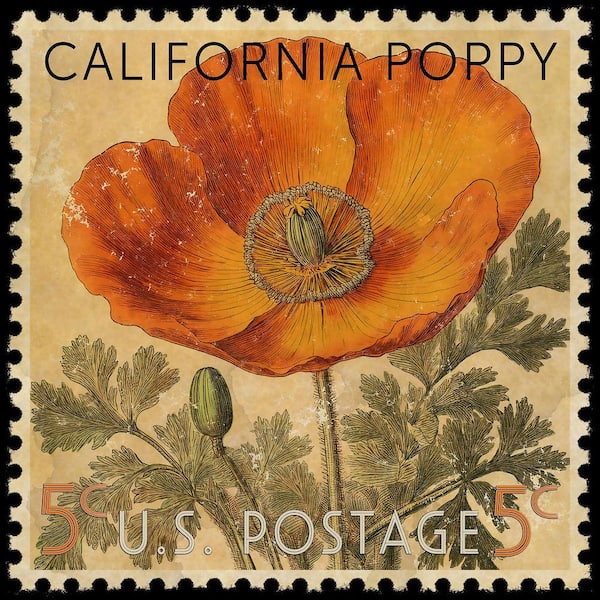 California State Flower Poppy Postage Stamp by Grotto Studios 1-Piece Unframed Graphic Print Nature 20 in. x 20 in.