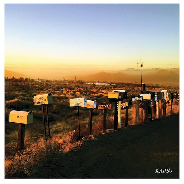 Desert Sunset Mailboxes by Steven A. Heller 1-Piece Unframed Canvas Drawing Print 14 in. x 14 in.