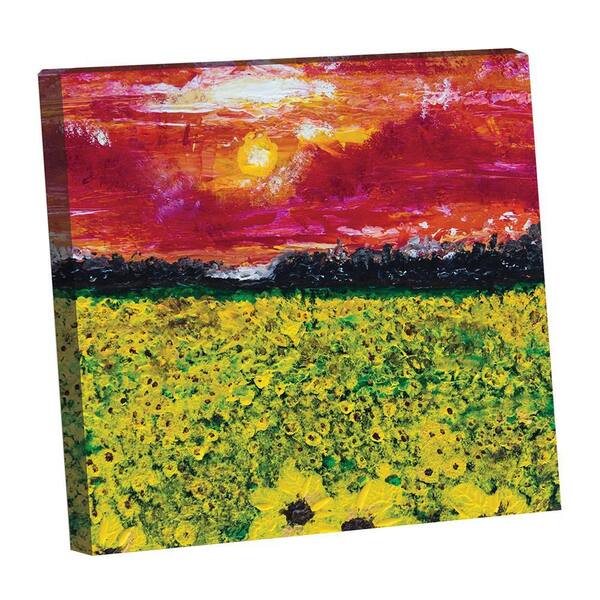 Field of Sunset Abstract Design by Sarah Wahl 1-Piece Unframed Canvas Drawing Print 14 in. x 14 in.