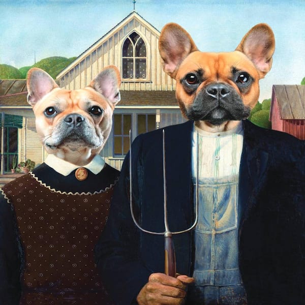 French Bulldog American Gothic Farmers by Grotto Studios Unframed Graphic Print Poster Art Print 16 in. x 20 in.