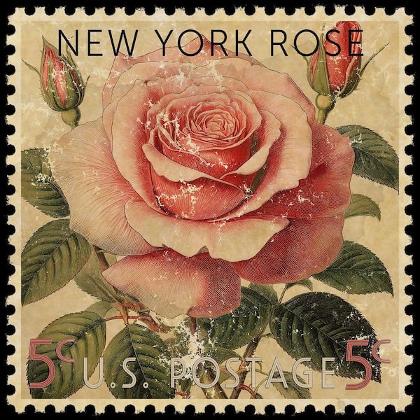 New York State Flower Rose Postage Stamp by Grotto Studios 1-Piece Unframed Graphic Print Nature 20 in. x 20 in.