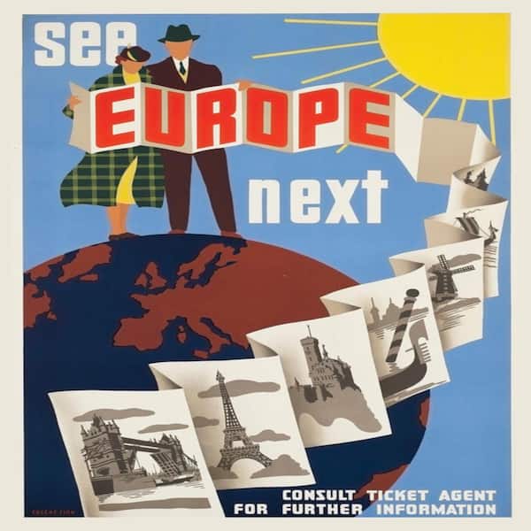See Europe Next Vintage Travel by Grotto Studios Unframed Graphic Print Abstract Poster Art Print 24 in. x 36 in.