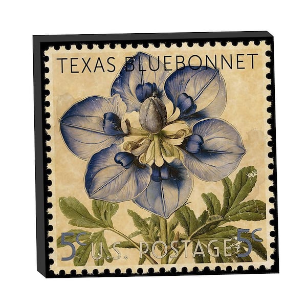 Texas State Flower BlueBonnet Postage Stamp by Grotto Studios 1-Piece Unframed Graphic Print Nature 20 in. x 20 in.