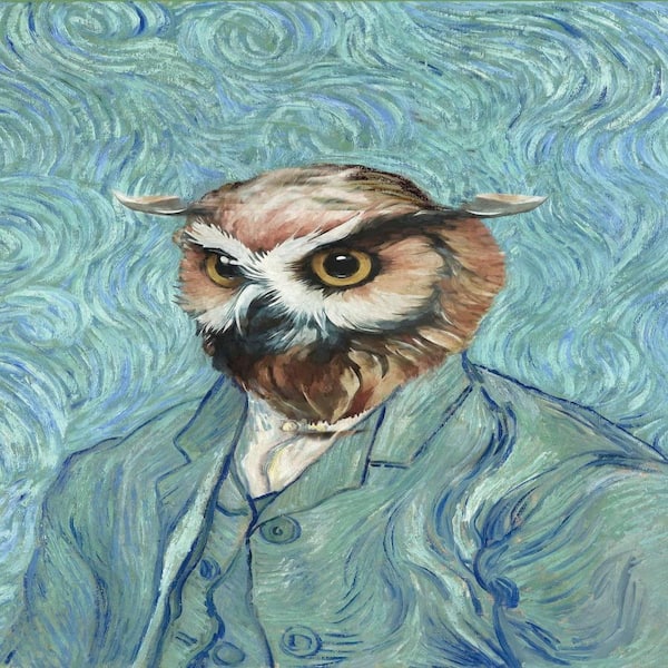 Van Gogh Owl Self Portrait by Grotto Studios 1 Piece Unframed Graphic Print Abstract Poster Art Print 20 in. x 30 in.