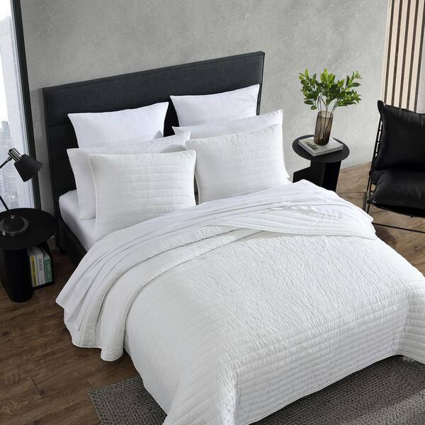 Crinkle 3-Piece White Cotton Queen Quilt Set