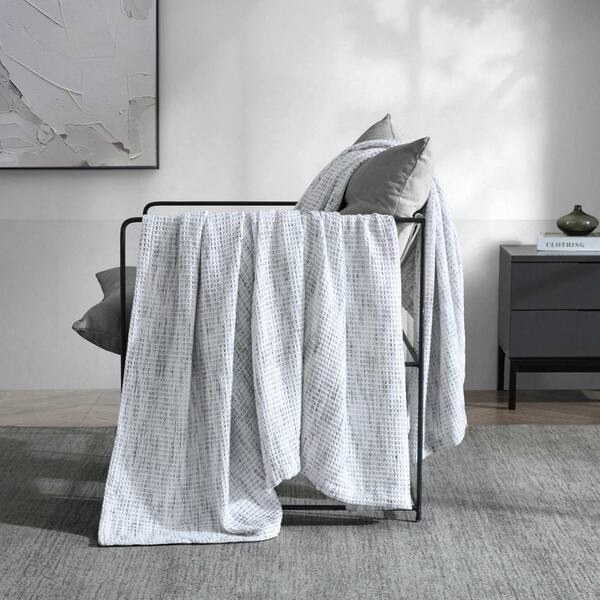 Jaspe Waffle 1-Piece Black White Cotton Blend King Blanket