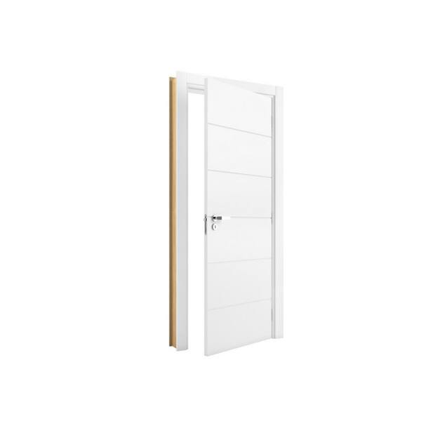 28 in. x 80 in. Modern 6-Panel 45/90 Left-Handed White Solid Core Wood Single Prehung Interior Door