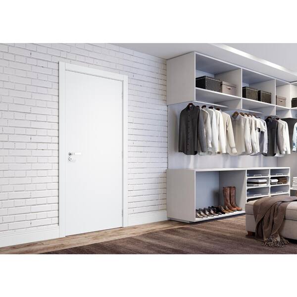 36 in. x 80 in. Modern Flat 45/90 Left-Handed White Solid Core Wood Single Prehung Interior Door