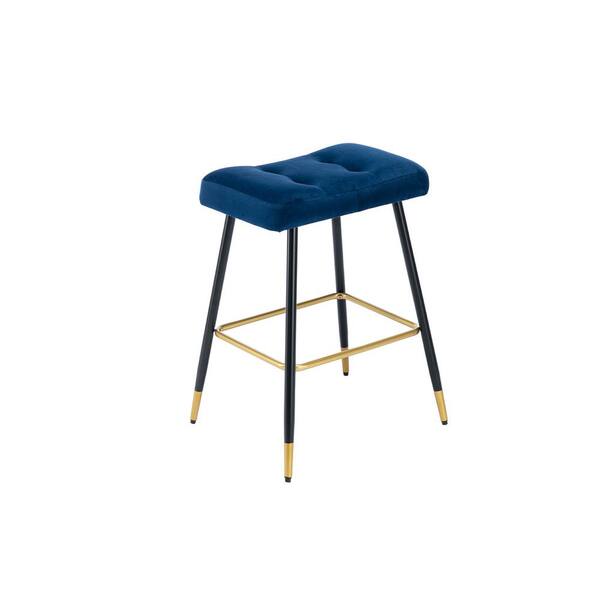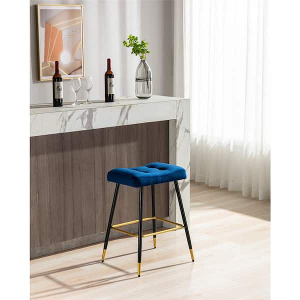 26.34 in. Navy Backless Metal Frame Bar Stools Footrest Counter Height Dining Chairs with Foam Seat