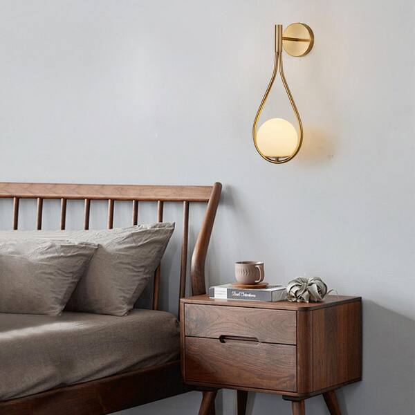 1-Light Modern Gold Wall Sconces with Frosted Glass Globe for Bedroom, Living Room, Hallway (2-Pack) (Bulb Not Included)