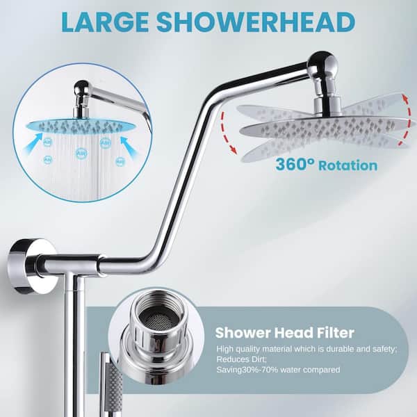 • Dual shower heads with angle-adjustable rainfall spray