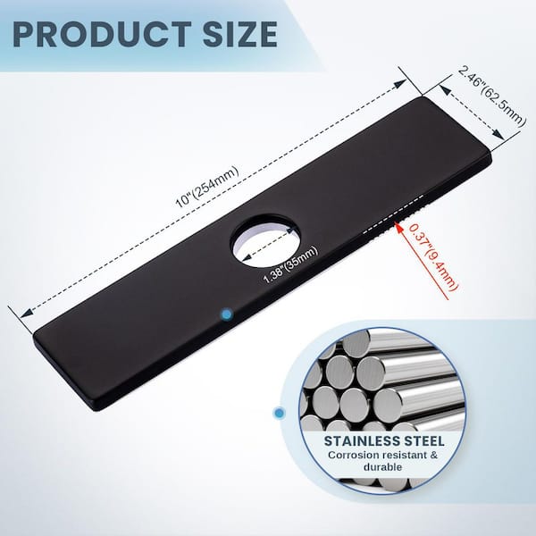 10 in. x 2.46 in. x 0.33 in. Stainless Steel Kitchen Sink Faucet Hole Cover Deck Plate Escutcheon in Matte Black