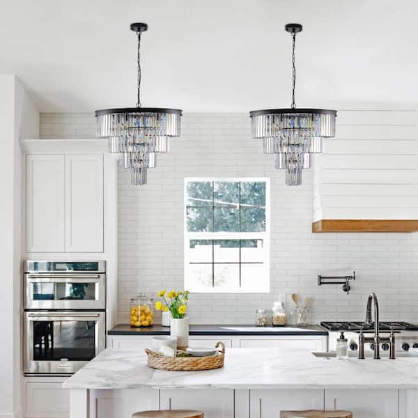 12-Light Black Luxury Crystal Chandelier Modern Chandeliers Hanging Fixture Ceiling Light for Living Room