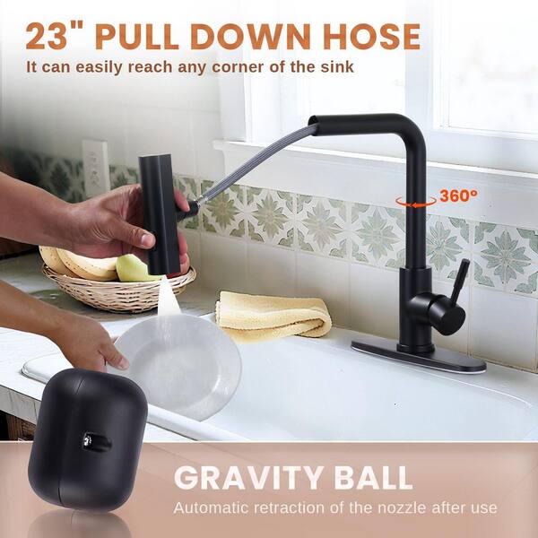 14 in. H Single Handle 360° Swivel Spout Pull Down Sprayer Kitchen Faucet with 3-Mode Spray Included in Matte Black
