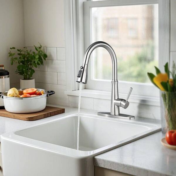 15.4 in. Single Handle Pull-Down Sprayer Kitchen Faucet, Kitchen Faucet with 360° Swivel Spout in Brushed Nickel