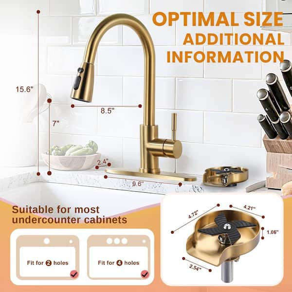 15.6 in. H Single Handle Pull Down Sprayer Kitchen Faucet with360 Degree Spout Swivel and Glass Rinser in Brushed Gold