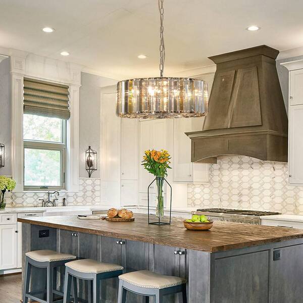 16.5 in. 4-Light Silver Crystal Chandelier, Hanging Light Fixture with Adjustable Height (Bulb Not Included)