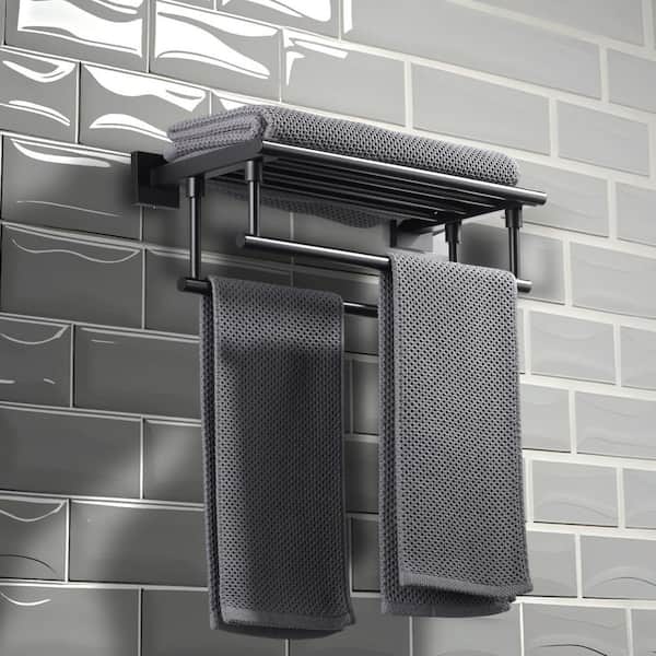 16 in. Wall Mounted Double Towel Bar in Matte Black