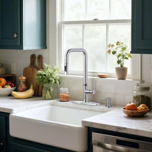 17 in. Single Handle Pull Down Sprayer Kitchen Faucet with 360° 2-Mode Spray and Soap Dispenser in Brushed Nickel