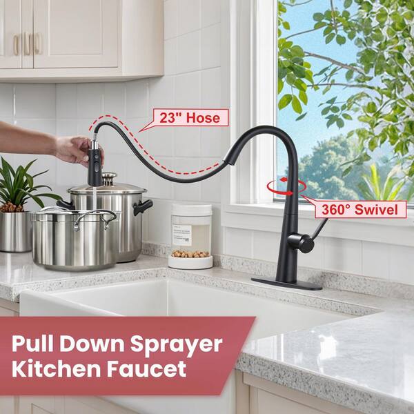 18 in. H Single Handle Pull Down Sprayer Kitchen Faucet with 3-Spray and 360° Spout Swivel Mode in Matte Black