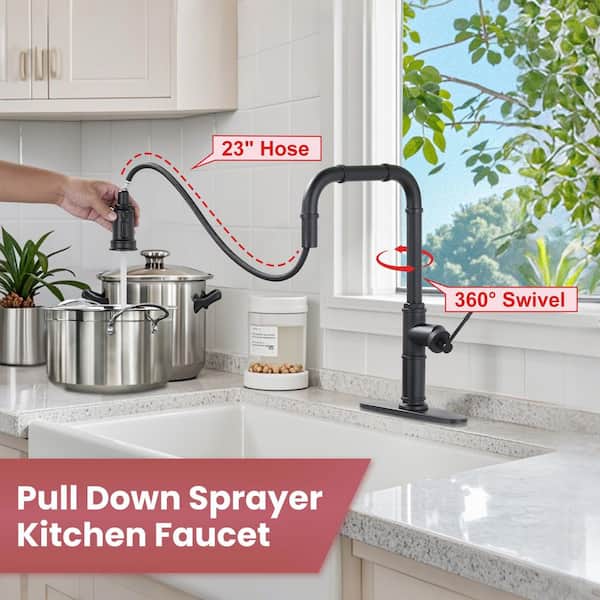 18 in. Single Handle Pull Down Sprayer Kitchen Faucet with 3-Mode Sprayer Head in Matte Black