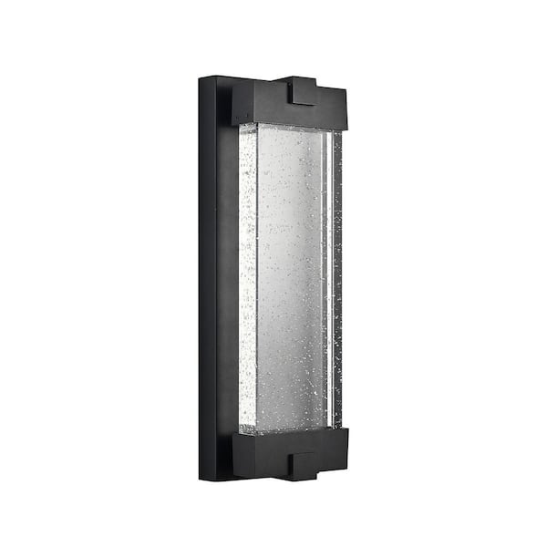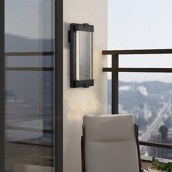 19 in. Black Aluminum Hardwired LED Outdoor Wall Sconce Light with Bubble Crystal Glass for Patio Porch (1 Pack)