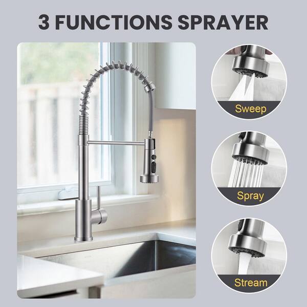 19 in. H Single Handle 360° Swivel Spout Pull Down Sprayer Kitchen Faucet with 3-Mode Spray in Brushed Nickel