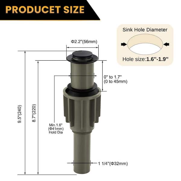 • Universal fit for 1.6 in. to 1.9in sink holes