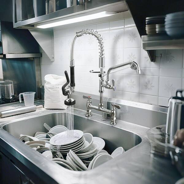 2 Handle 21 in. H 360° Swivel Deck Mount Pull Down Sprayer Kitchen Faucet with Drinking Water Filler in Polished Chrome