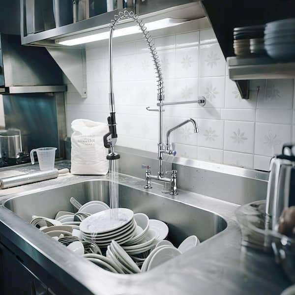 2 Handle 38 in. H 360° Swivel Deck Mount Pull Down Sprayer Kitchen Faucet with Drinking Water Filler in Polished Chrome