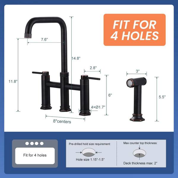 2-Handle High-Arc 4-Hole Deck-Mount Kitchen Faucet with Side Sprayer in Solid Brass Oil Rubbed Bronze